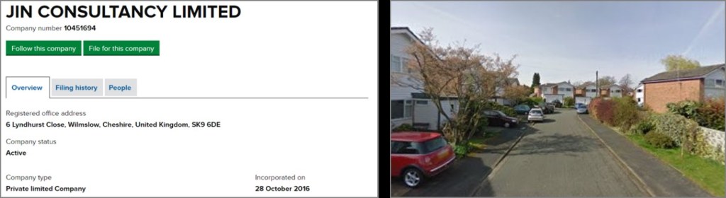 Figure 1 – Business information and view of company that is known to receive certificate (source: UK Companies House information, Google Maps)