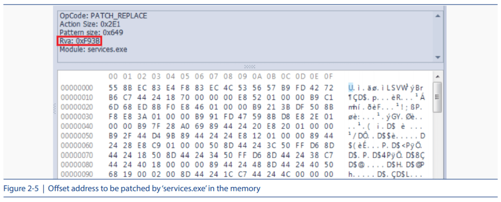 [Fig 2-5] shows the offset address to be patched by ‘services.exe’ in the memory, and [Fig 2-6] shows the ‘ScRegisterTCPEndpoint()’ function used during this process.