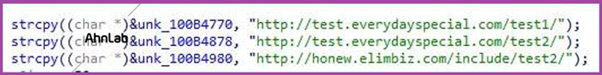 AhnLab では、ダウンロードおよび C2 の URL 以外にも、上記マルウェアに関して次の通りに診断中である。