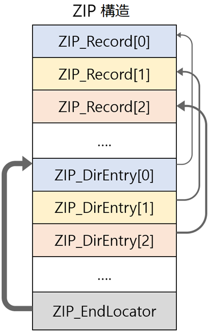 ほとんどの圧縮・解凍プログラムはZIP形式で圧縮された内部ファイルを読み込むとき、一般的に「EndLocator」という構造を一番先に参照する。