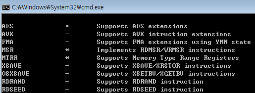 現在使用している環境の AVX 対応可否を確認するには、Windows Sysinternals が提供する Coreinfo ツールで確認する方法がある。