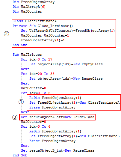 CVE-2018-8174の脆弱性は VBScript エンジンの Use After Free 発生によるオブジェクトの再使用問題を命名したものである。