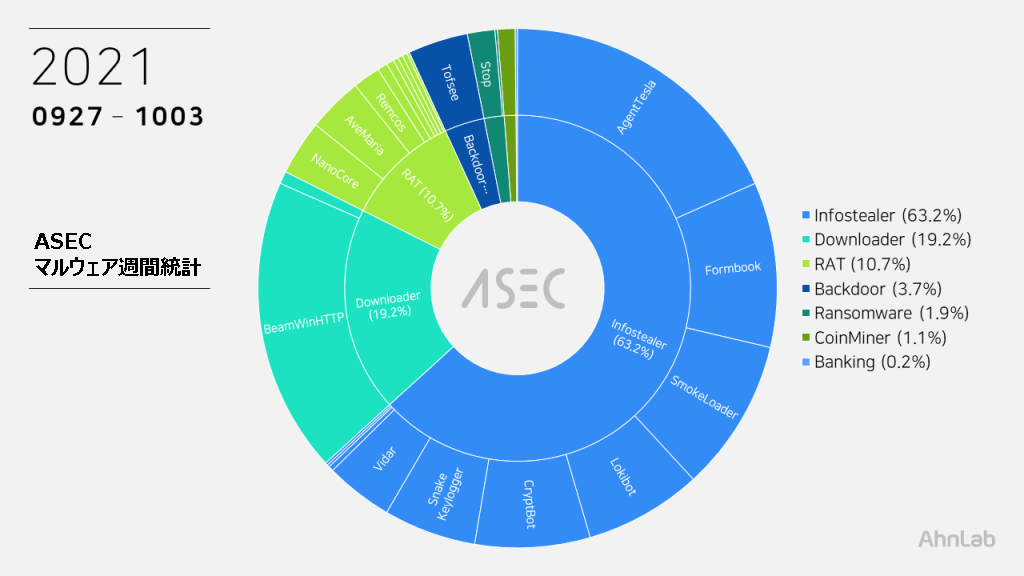 ASEC 分析チームでは、ASEC 自動解析システム RAPIT を活用し、既知のマルウェアに対する分類および対応を進めている。ここでは、2021年9月27日(月)から2021年10月03日(日)までに収集された1週間の統計を整理する。