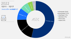 ASEC 分析チームでは、ASEC 自動解析システム(RAPIT)とハニーポットを活用してフィッシングメールの脅威をモニタリングしている。本記事では、2022年12月11日から12月17日までの一週間で確認されたフィッシングメール攻撃の拡散事例と、これらをタイプ別に分類した統計情報を紹介する。一般的にはフィッシング攻撃者が社会工学技法を利用し、主にメールを利用して機関、企業、個人などに偽装したり、これらを詐称することで、ユーザーにログインアカウント(クレデンシャル)情報を流出させる攻撃のことを指す。また、フィッシングは広い意味で、攻撃者が各対象を相手にする情報流出、マルウェア配布、オンライン詐欺行為などの攻撃を可能にする不正な手口(technical subterfuge)を意味する。本記事では、フィッシングは主にメールで配布される攻撃というところにフォーカスをあてている。そして、フィッシングメールをベースに行われる様々な攻撃方式を詳細にカテゴライズする。そしてまだ発見されていなかった新たなタイプや注意すべきメールをキーワードとともに紹介し、ユーザーの被害の最小化に努める。本記事で扱うフィッシングメールは添付ファイルのあるメールのみとする。添付ファイルがなく、不正なリンクのみが本文に含まれているメールは本記事では扱わない。ログインアカウント情報流出タイプは、偽のログインページで用語を定義している。
